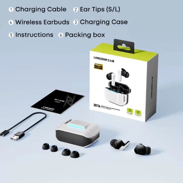 ایرپاد لانگسدوم Langsdom TG16 Zeta، یک هندزفری بلوتوثی و ایرپاد گیمینگ جدید از برند معتبر Langsdom می باشد. این ایرپاد گیمینگ، به بلوتوث نسحه 6.0 مجهز می باشد. درایور های این ایرپاد گیمینگ 10 میلی متری است. این درایور های قدرتمند قادرند تا صدا را به صورت واضح و شفاف به گوش شما برسانند. تأخیر این ایرپاد حدود 45 میلی ثانیه می باشد. شما می توانید به کمک این ایرپاد های گیمینگ، تمام صدا های بازی را در گیم های پابجی موبایل PUBG، کالاف موبایل Call of Duty Mobile و ... را با بیشترین جزییات بشنوید..